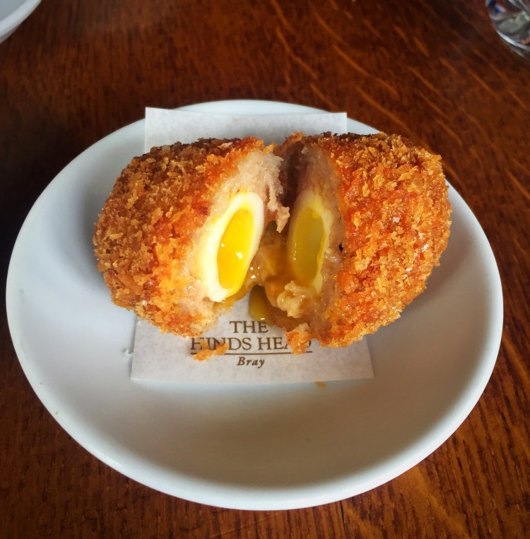 Before we arrived, It had been suggested, no, insisted that I order a few things. Two of these were as a pre starter. Devils on Horseback, (always a hit with me) and…… THAT. SCOTCH. EGG.
